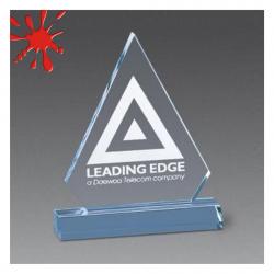 3/4" Thick clear, jade or blue acrylic. Recognize and celebrate your achievements with our stunning Pinnacle acrylic award. Choose from three exquisite colors - clear, jade green or glacier blue - that perfectly match your style and preferences. Our laser engraving option provides a frosted look that offers excellent contrast, while our full-color printing option adds a vibrant touch to your artwork. Whether you want to acknowledge an outstanding employee, a top-performing student, or an exceptional team, our acrylic award is the perfect way to show your appreciation. It is an excellent choice to honor and highlight the hard work and dedication of someone who deserves it.