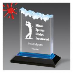 1" Thick clear acrylic. Celebrate your achievements with our stunning beveled Impress acrylic award. You have the option to choose from three exquisite base colors - blue, silver or gold mirrored - that best fit your personal style and preferences. Our laser engraving option provides a frosted look for excellent contrast, while our full-color printing option adds a vibrant touch to your artwork. Whether you are recognizing an outstanding employee, a top-performing student, or an exceptional team, our acrylic award is the perfect way to show your appreciation. It is an excellent choice to acknowledge and honor the hard work and dedication of someone who deserves it.