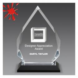 1" Thick clear acrylic. Recognize and celebrate your achievements with our stunning Diamond Impress acrylic award. You have the option to choose from three exquisite base colors - blue, silver or gold mirrored - that best fit your personal style and preferences. The crisp angles and bevels of the award allow the base colors to reflect beautifully. Our laser engraving option provides a frosted look and excellent contrast, while our full-color printing option adds a vibrant touch to your artwork. Whether you are recognizing an outstanding employee, a top-performing student, or an exceptional team, our acrylic award is the perfect way to show your appreciation and gratitude. It is an excellent choice to acknowledge and honor the hard work and dedication of someone who deserves it.