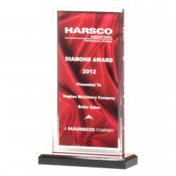 1/2" thick acrylic. Our acrylic award is a striking recognition piece that comes in a deep red draped satin pattern with a silver mirror border on the background. It is mounted on a black acrylic base, topped with red mirror, and can be customized with our laser engraving option that provides a frosted look for excellent contrast. Whether you wish to acknowledge an outstanding employee, a top-performing student, or an exceptional team, our acrylic award is a perfect way to express your appreciation.