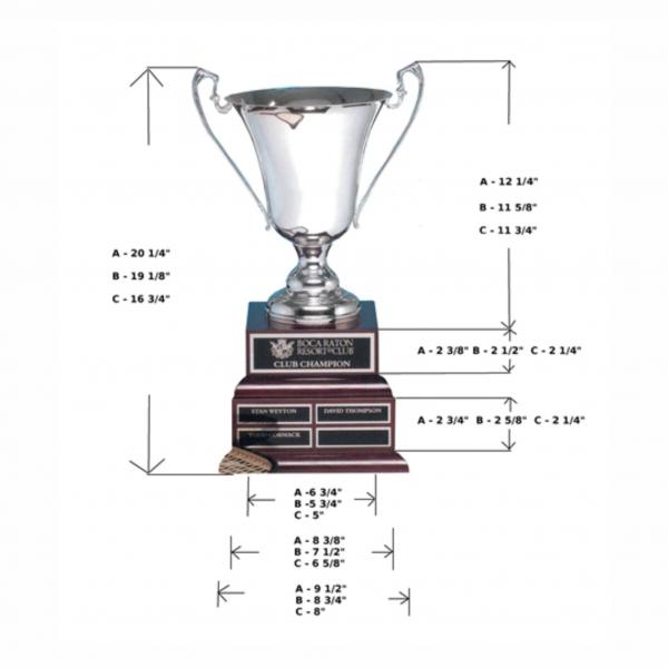 This exquisite trophy is made of silver-plated metal and boasts a 2-level high-gloss mahogany base at the bottom that can hold a silver-tone engraved plate at the top and individual engraving plates at the bottom. It is a great way to honor and acknowledge the hard work and dedication of those who deserve it.