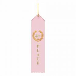 This ribbon is a standard 2" x 8" size and comes in a striking pink color with 4th Place printed in gold foil. However, please note that it is not possible to personalize this ribbon as it is a pre-made stock item.